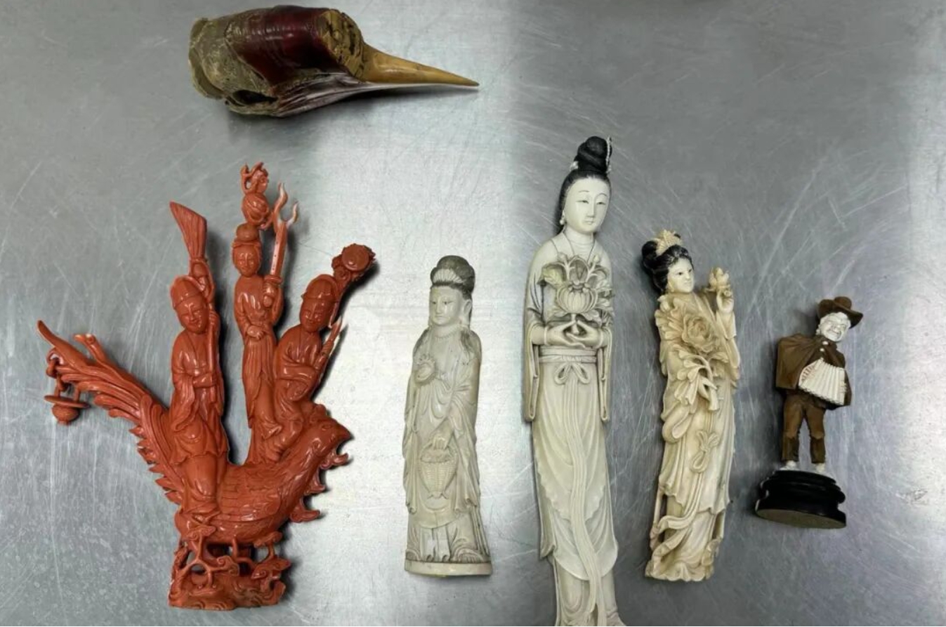 经开箱查验,现场关员在其行李中查获多件疑似由濒危动物为材料制作的工艺品。经鉴定,该批工艺品的材质包括盔犀鸟头骨、红珊瑚、象牙。其中盔犀鸟、现生象均为《濒危野生动植物种国际贸易公约》(CITES)附录Ⅰ列明保护物种,红珊瑚属于国家一级重点保护水生野生动物。