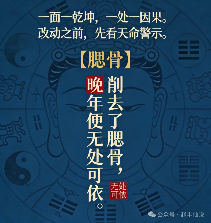 更可怕的是,腮骨对应的颐骨下府福根被破坏,晚年运势彻底衰败,就算年轻时攒下一些积蓄,也难享安稳,要么衣食无靠,要么居所不定,最终落得个晚景孤苦的下场。若是腮骨改后不对称,运势更是起伏极大,婚缘多变,还容易走偏门求财,一生坎坷波折不断。