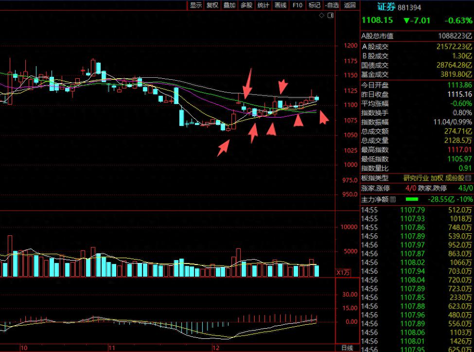 券商今日在前一个交易日冲高回落的基础上顺势低开低走,全天几乎都在水下运行,缩量回踩5日线后略有回升,日K线收阴;从12月8日以来,券商运行的节奏为“一阴”后必见阳,且收阳强度有加强,今日的“阴”可认为是“加油”,个人认为发挥“旗手”作用仅差“临门一脚”了。今日“头羊”由“长城”轮动到“财通”,仅7家未飘绿,为财通、长城、华鑫、华林、招商、华安、国投。