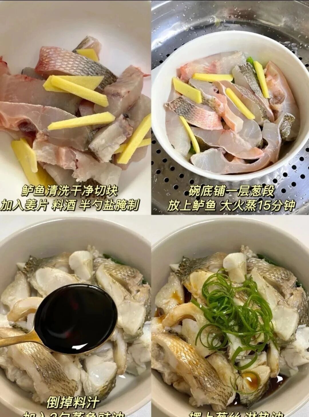 2. 蒸锅水沸后放入鲈鱼,大火蒸8分钟取出。