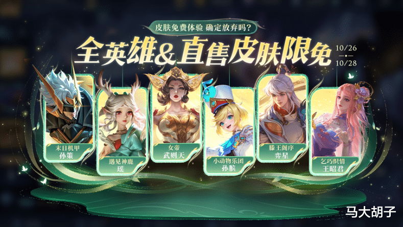 小王除了送出上述豪礼以外,在10月26日-28日这个周末期间,还将开启全英雄全皮肤限免活动,并且送五级铭文卡!