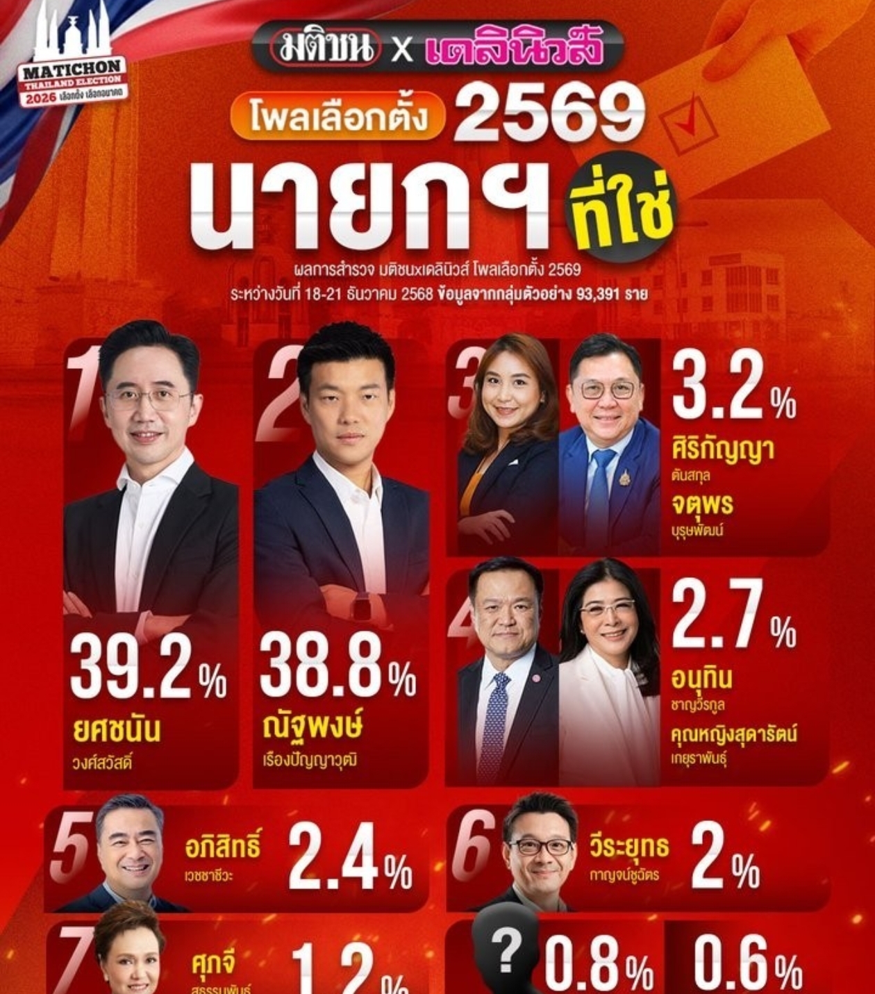 有意思的是,民调还暴露了隐藏剧情。为泰党故意让育查南当头号候选人,就是要把他信家族的光环和技术路线结合。佩通坦站台时特意选在傍晚黄金时段,看来是要用明星效应稳住基本盘。不过人民党那边纳塔蓬的支持率也这么高,两强争霸的局面恐怕会让下一届大选更加难料。