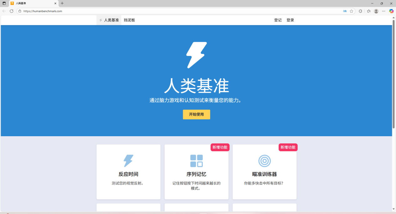 4、Human Benchmark这是一个可以检验你智商的变态网站,里面集合了各种大脑性能测试,比如反应速度、短期记忆、视觉记忆、打字速度、黑猩猩测试等等。每个都能精准戳中你脑子的极限。比如最热门的反应时间测试等方块变率,立刻点击就能知道你的反应速度处于全球人类哪个水平。