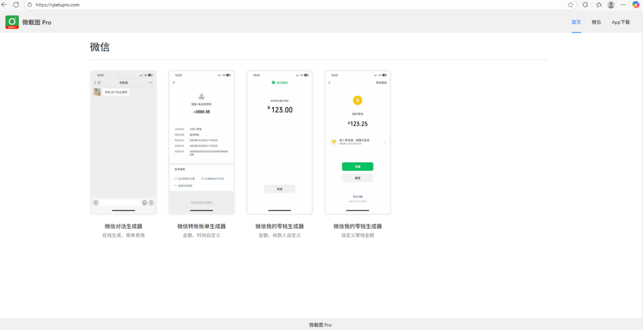 11、微截图这是一个可以在线生成仿真微信截图的强大截图神器,里面不仅可以生成微信对话,还可以生成转账订单、收款页面和我的零钱等页面。每个页面都可以设置状态栏的信息。例如手机时间,手机电量甚至信号有几格都可以设置,还可以设置手机的型号,不仅可以选择安卓还是苹果,还可以选择手机的品牌和型号,还可以设置多个角色,给不同的角色设置头像名称,方便切换不同聊天人。