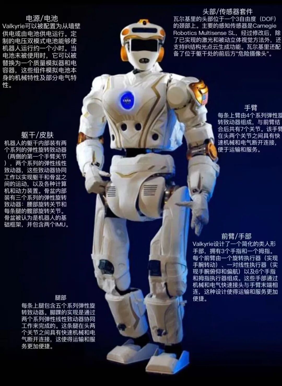 所以,宇树科技真正的对手是NASA的机器人Valkyrie,直译为女武神。这台机器人的设计初衷是为了在太空站辅助宇航员,但它也与诸多学校合作,在麻省理工、得州奥斯汀、华盛顿大学的实验室中出现。