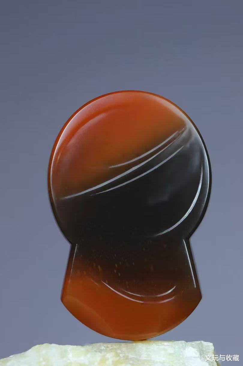 这件作品的形状比较有意思,上面黑红冻料深浮雕迦楼罗,下面柿子红雕刻兽面纹,整个画面故事感非常强烈。