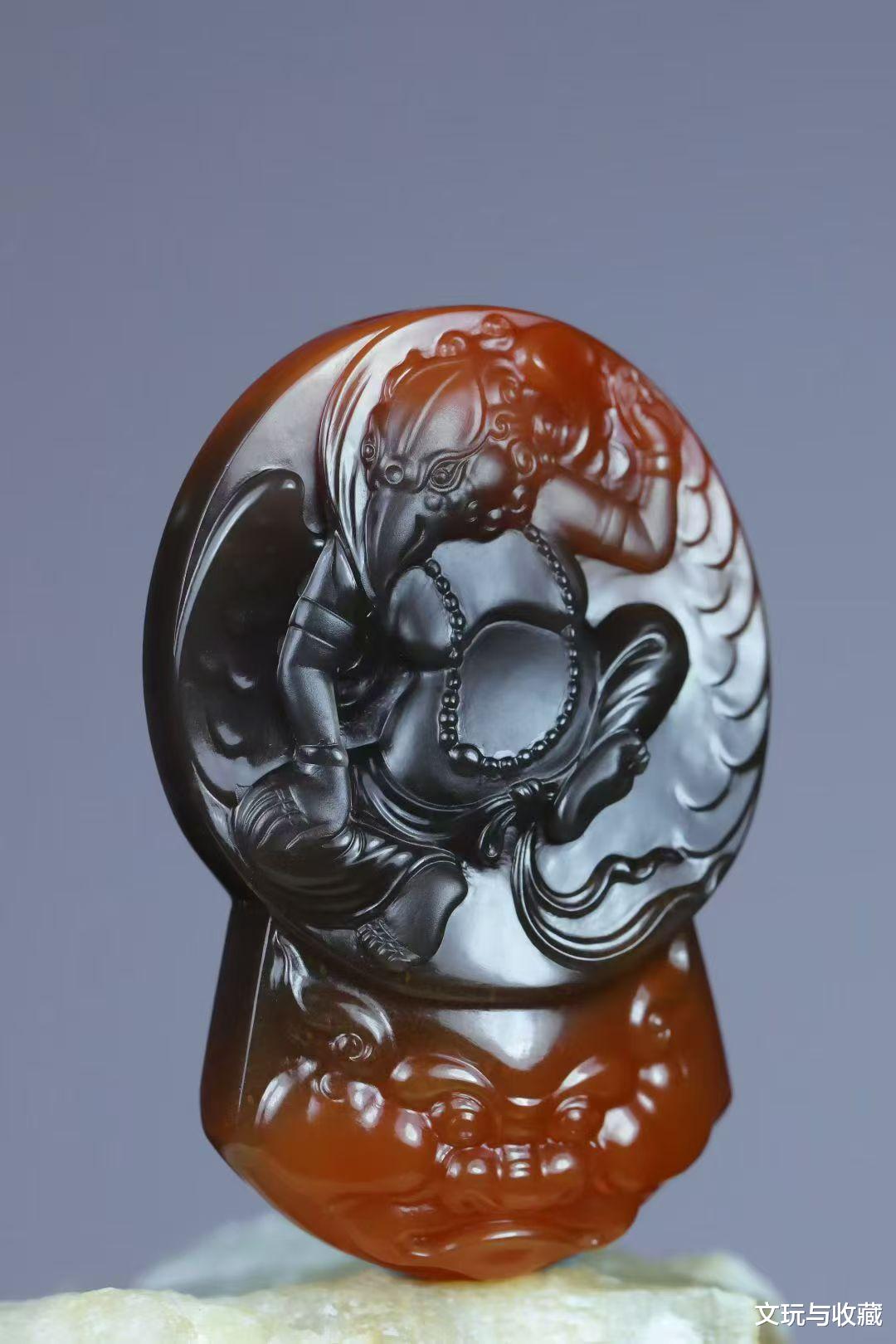 今天我用南红玛瑙雕刻一件“鸟人”,其实人家本名叫迦楼罗,大家尊称他金翅鸟王。