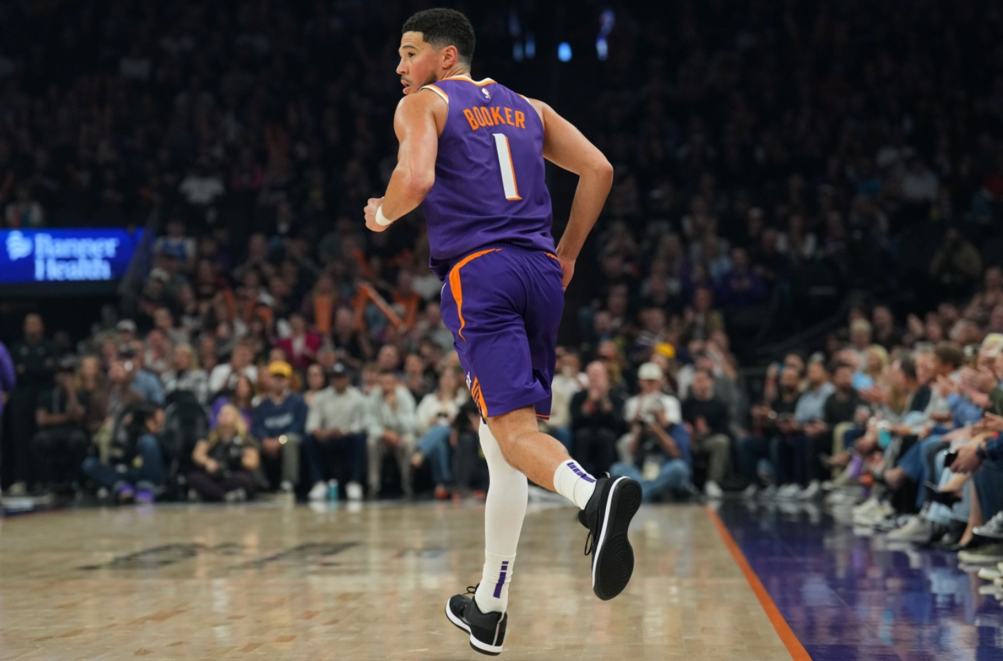 暂停回来后,太阳发边线球,布克接球后面对防守,在三分线外果断出手,皮球应声入网!比赛时间仅剩0.7秒,雷霆最后一攻未能命中,太阳最终以108-105险胜雷霆。