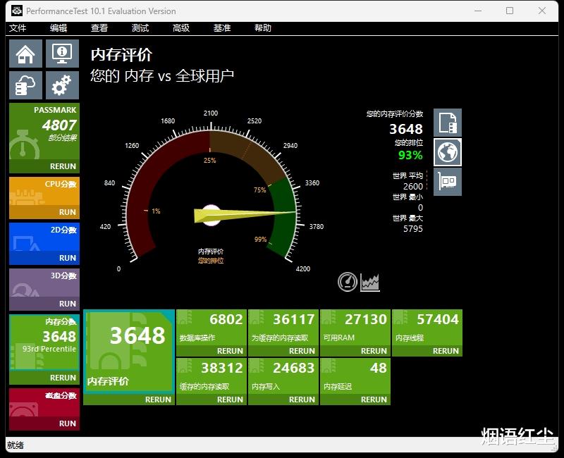 更重要的是,由于CL28的低时序设置,金百达星刃黑内存延迟得到了有效控制,这在游戏和实时应用场景中能够带来明显的性能提升。对于使用AMD平台的用户来说,6000MHz恰好是AMD锐龙处理器的甜点频率,能够充分发挥处理器性能。使用PerformanceTest跑个分,评价分数为3648分,表现不错。