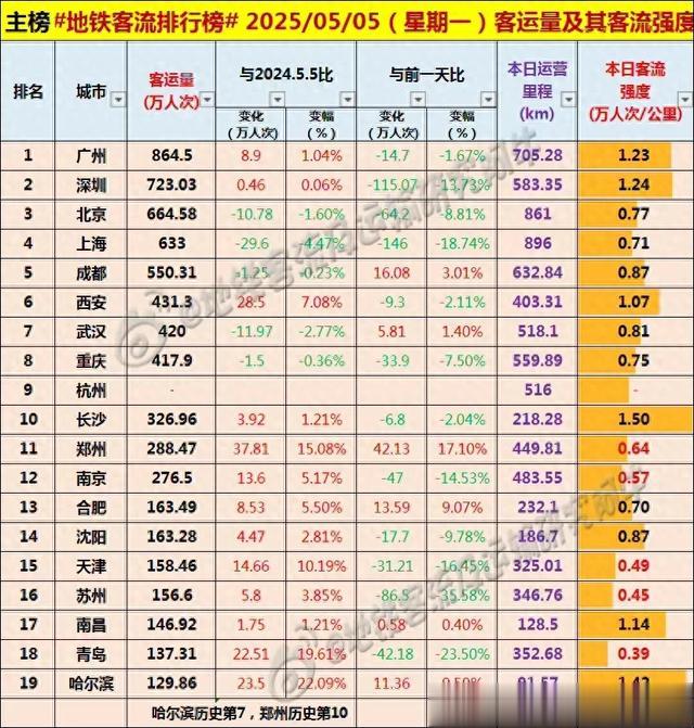 假期最后一天客流量以返程客流为主,从昨日客流量报告来看:地处交通枢纽的城市返程客流量在增加,而之前的旅游热点城市客流量则迅速降温。客流量增加的几个城市分别是成都、武汉、郑州、合肥和哈尔滨,其中成都、武汉、郑州都是重要的交通枢纽,返程客流必经之地,客流量增加也是必然,而合肥、哈尔滨则应该是旅游余温未散继续保持了一定的热度。但前几天旅游的热点城市则迅速降温,客流量下滑明显:上海、深圳猝降了100多万,苏州也下降了86万整体客流量还不如合肥,低于沈阳和天津。南京客流量昨日未达到300万人次,比前日降了47万客流量低于郑州了,这些南方城市这个五一客流量暴增,随着假期结束也逐步退潮了。