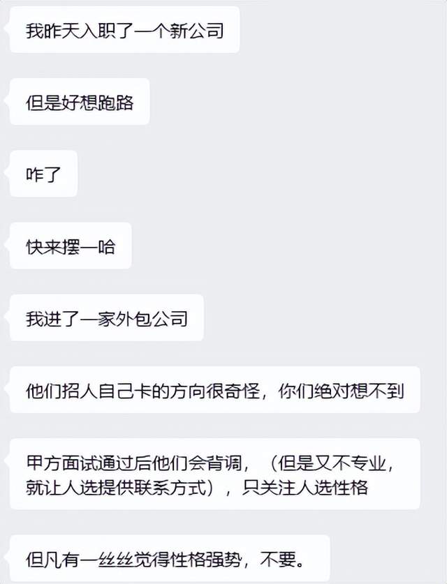 外包招聘通常比普通公司压力更大,而这家更关注的是人选性格,稍微强势,不要。
