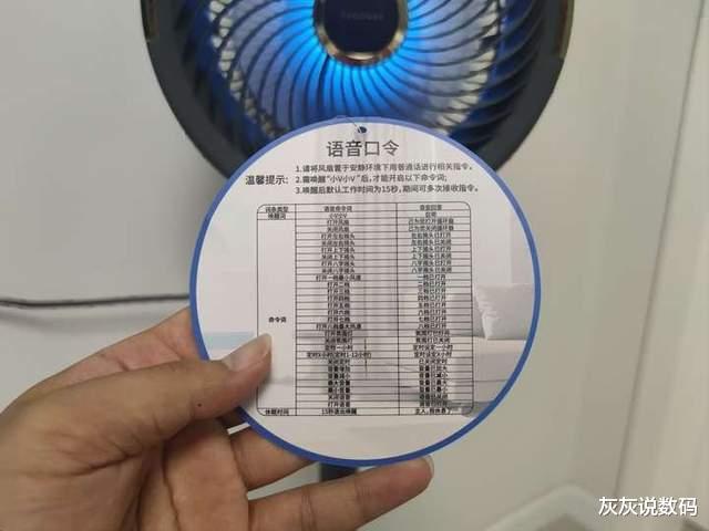 在操控方面,宫菱空气循环扇有多种控制方法,我们可以通过机身触控调节、遥控器控制以及语音控制,在语音控制的时候我们只需要喊小V小V,就可以唤醒电风扇,然后喊出打开风扇、关闭风扇,打开二档、打开七档、打开氛围灯和定时x小时,具体的语音控制项目,可以详看小卡片内容。