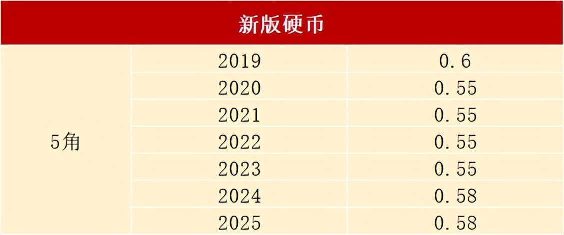 2025版5角已经发行在今年年中,2025年新版5硬币开始投放。