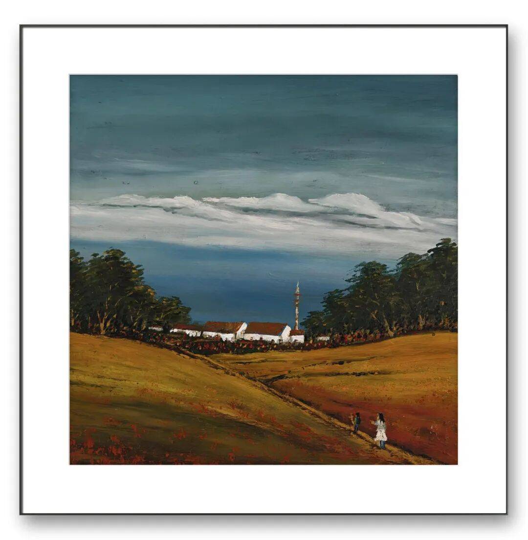 张连贵的油画题材,始终围绕“日常的诗意”展开。他不画宏大的叙事,而将目光投向乡野、湖畔、木屋、归舟,在平凡的生活场景里,挖掘出生命的诗意。乡野小径中,两个孩童走在金黄的田野间,远处的白墙与尖塔隐于树后,画面没有戏剧化的情节,却在朴素的日常里,晕出“童年与故乡”的温柔;鸟雀栖于花枝,色彩浓烈却不失清雅,既是对自然生灵的凝视,也是对“闲情逸致”的东方美学的呼应。他的题材是“生活的切片”:可能是一次湖畔的远眺,可能是一间木屋的午后,可能是一群归巢的鸟雀,这些细碎的日常,在他的画布上,都成了值得被珍藏的诗意。
