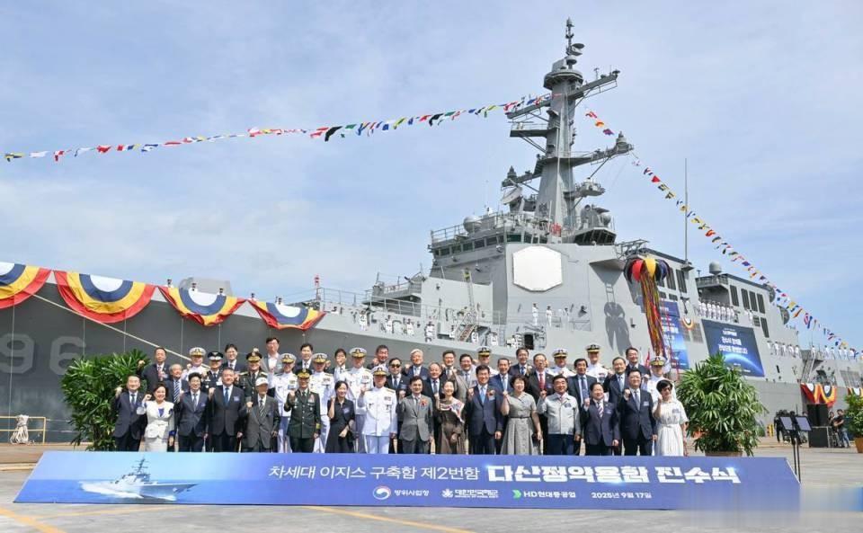 韩国海军又添新舰!这几天,在蔚山船厂,伴随着礼炮和礼花,韩国最新的宙斯盾驱逐舰“茶山丁若鏞”号正式下水。这艘大块头,排水量足足有8200吨,是韩国海军第五艘神盾舰,也是目前韩国最先进的水面作战平台之一。