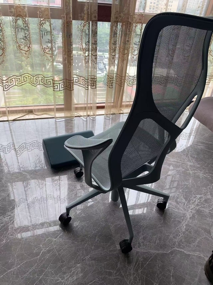 背部包裹感比较完整,压力分布均匀,不会集中压在某一个点。后仰时,腰部支撑依旧跟随,不会出现很多椅子常见的“躺下反而腰空”的问题。