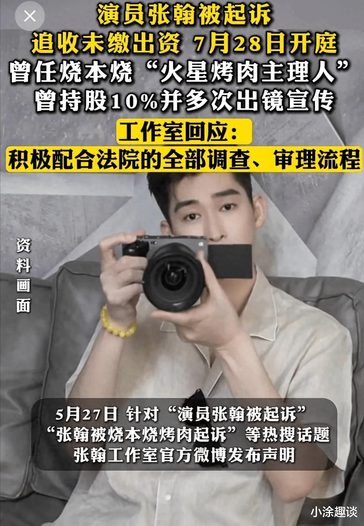 今天咱们来唠一个娱乐圈又一桩“塌房”大戏——知名男星张翰被起诉!这瓜吃得我差点咬到舌头,烧本烧烤肉店的股东们居然把张翰告上法庭,理由居然是“未缴出资款”?这剧情比《千秋令》还魔幻!