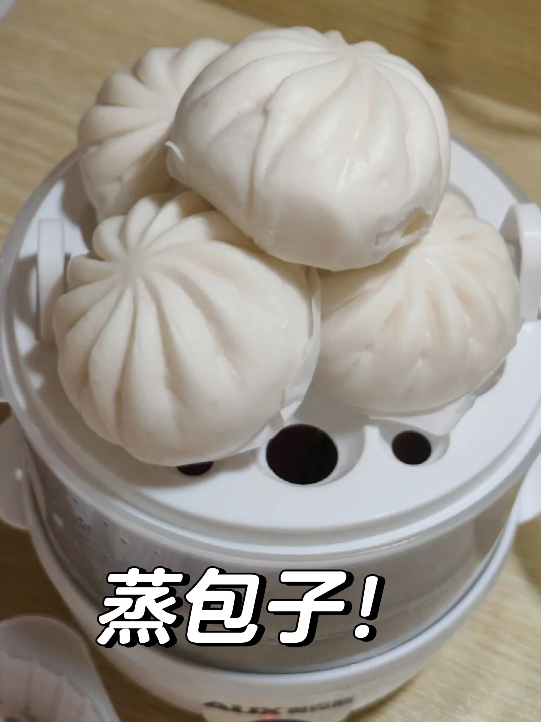 直接将准备好的包子、饺子、烧卖、馒头或者是其他的一些主食,放入蒸蛋器当中蒸熟就可以了。