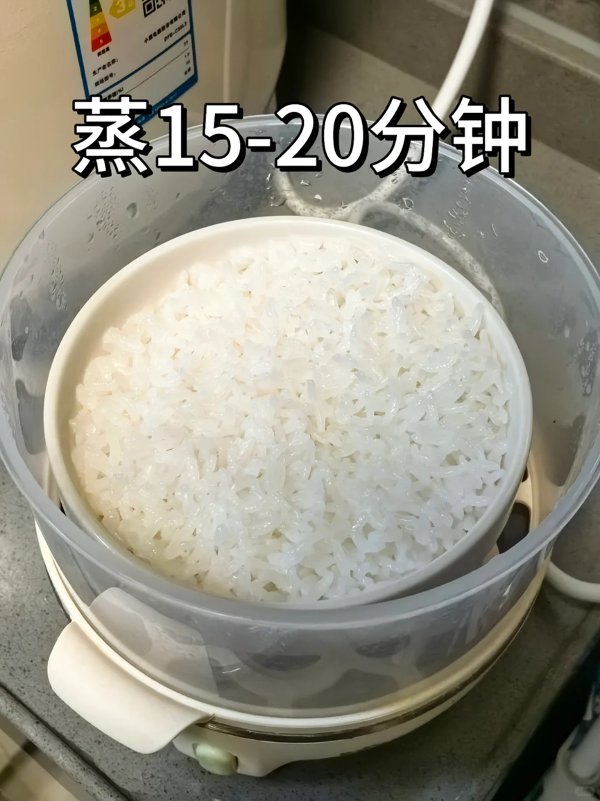 将大米放入碗中,加入适量的水放入蒸蛋器里面,蒸15~20分钟左右就可以了。