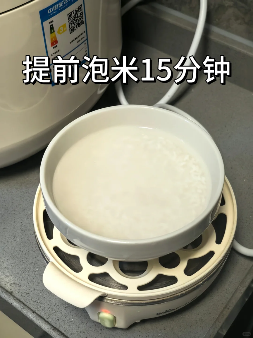 只需要提前准备好一个普通的小碗,然后将适量的大米放在水中浸泡15~30分钟左右,