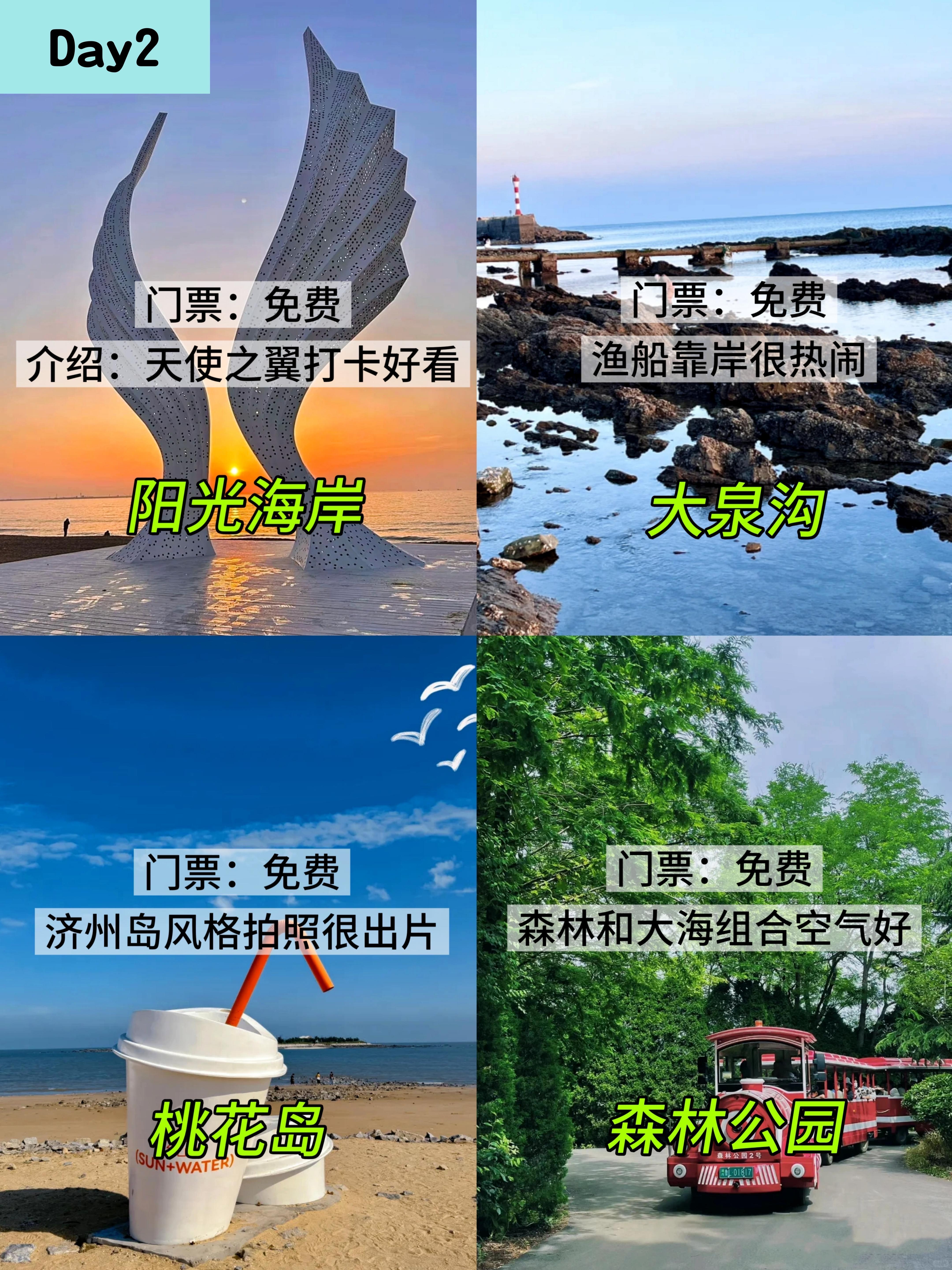 🌟Day2 阳光海岸景区→大泉沟→桃花岛→森林公园