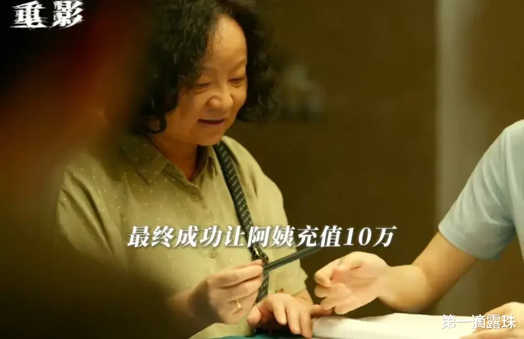 《重影》预告片中,面对一位前来领免费鸡蛋的阿姨,马伟成先是轻声细语聊天,对阿姨的颈肩表示关心,接着就安排阿姨体验理疗椅。