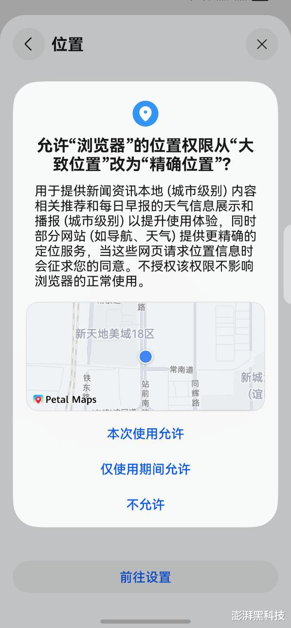 现在,我手机里的App都变得“文明”多了。它们只会申请自己功能范围内真正需要的权限,整个手机的隐私环境感觉清爽了一大截。不只是App权限,网页权限也同样被管得明明白白。比如我用华为浏览器上一些招聘网站,它会弹窗询问我是否授权位置信息。我可以选择同意,也可以拒绝,而且这个授权是针对这一个网站的,不会影响到其他。不像以前,一个App授权了,就等于拿到了“通杀令牌”。这种精细到“网站级”的权限管理,让我上网的时候心里特别有底。