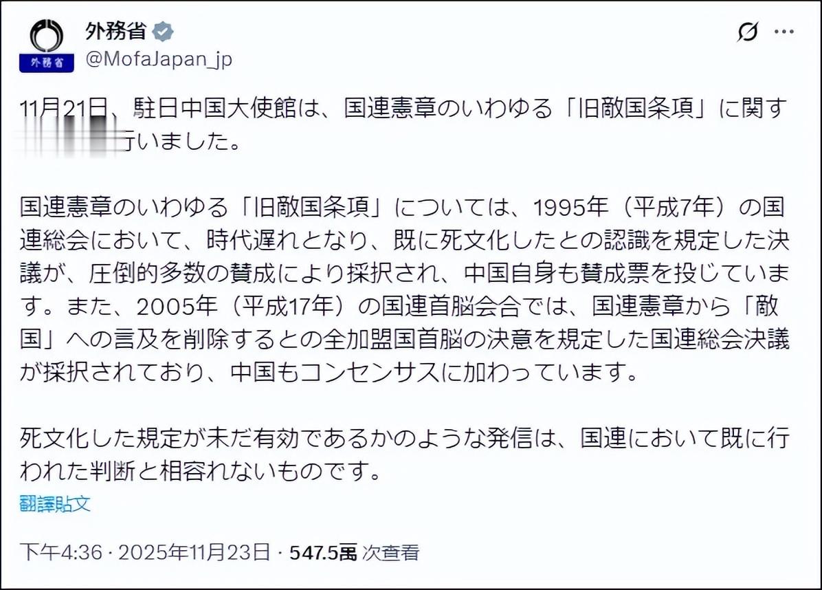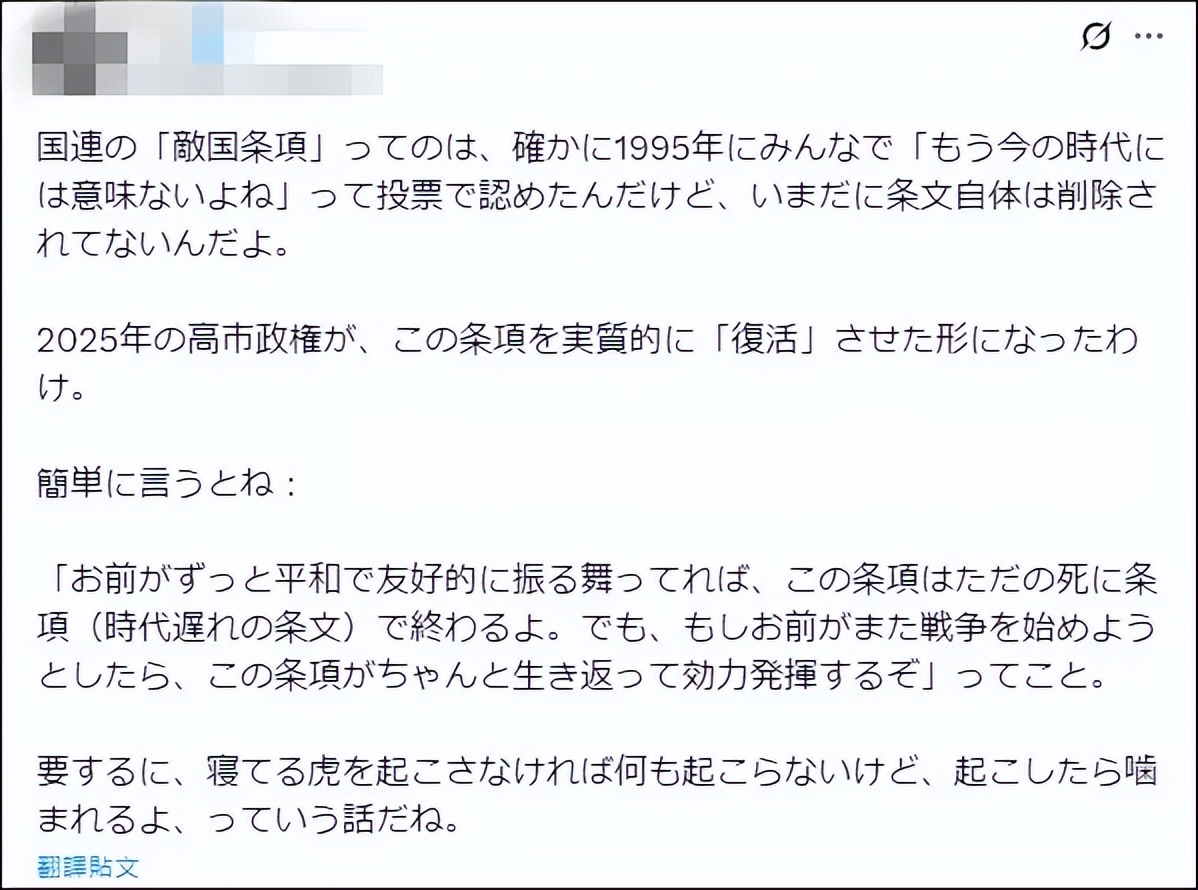 对此,连知道真相的日本人都觉得日本外务省错的离谱,指日本此举更是足以激活“敌国条款”。