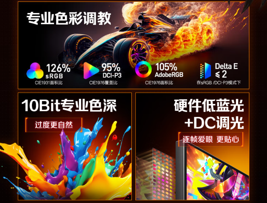 值得一提的是,科睿X7 PRO显示器还具备硬件低蓝光功能,并通过DC调光技术有效减少了屏幕闪烁现象。长时间面对显示器进行游戏或工作,眼睛容易感到疲劳和干涩,而科睿X7 PRO的硬件低蓝光功能能够在不改变画面色彩的前提下,有效过滤掉有害的蓝光波段,保护玩家的视力健康。同时,DC调光技术也进一步提升了显示器的舒适性和稳定性。