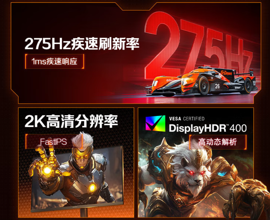 对于电竞显示器而言,刷新率是至关重要的性能指标。科睿X7 PRO显示器在这方面表现出色,其刷新率高达275Hz,远超普通显示器的60Hz或144Hz。高刷新率意味着屏幕每秒能够更新更多的画面,配合其1ms GTG灰阶响应速度,可以有效减少画面撕裂和延迟现象,为玩家带来更加流畅、无拖影的游戏体验。无论是快节奏的射击游戏还是高速移动的赛车游戏,科睿X7 PRO都能轻松应对,让玩家在战场上所向披靡。
