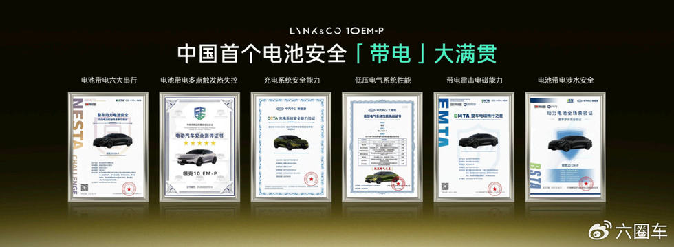 此外,领克10 EM-P还顺利通过了充电系统安全能力、低压电气系统性能、雷击极端电磁环境、电池安全预警等多项测试,成功拿下中国首个电池安全认证的带电“大满贯”,全面刷新电池安全上限,更引领汽车安全标准持续向上。