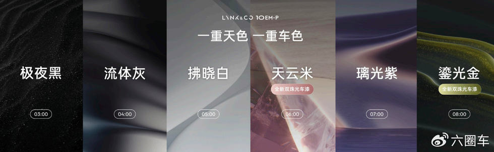 除了最帅的造型,领克10 EM-P还以“晨光律动”为设计灵感,带来极夜黑、流体灰、拂晓白、鎏光金、天云米、璃光紫6款车色。其中,鎏光金和天云米采用了默克专利Xirallic®双珠光晶彩光学车漆,综合成本增加了2倍,色彩饱和度提升了30%以上,采用豪车专属喷涂工艺,30台机器人接力喷涂10小时,形成8层防刮耐磨耐腐蚀车漆,让好看更耐看。