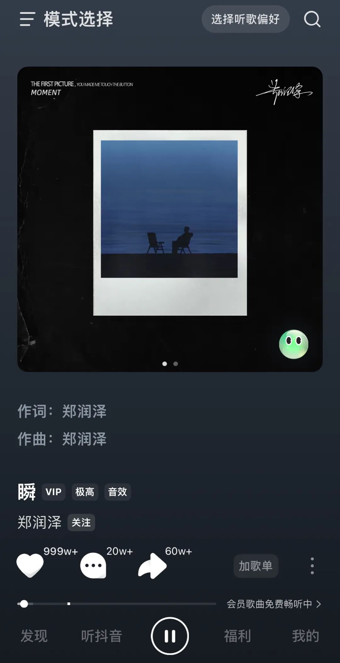 同时,汽水音乐又不乏网易云音乐的部分DNA,简而言之便是“文青气质”和“社区性平台”标签,在汽水音乐的垂直单瀑布流歌曲推荐页,不少歌曲是有两张封面的,一张是原本的专辑封面,一张是类似小红书“大字报”帖子一般的热评封面。比如歌曲《指纹》的第二张封面,便是点赞过万的热评:“我当然知道人和人之间只是一段路的关系,但你要记得这个,在那段同行的时光里,我是真心实意向着你的。”