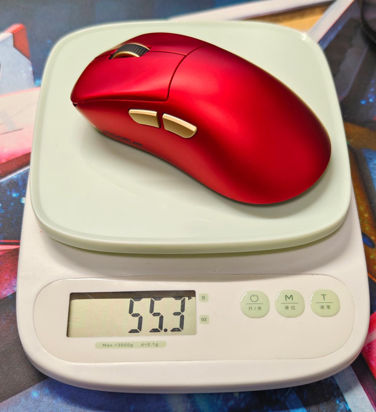 再说说手感,拿起鼠标第一感觉就是轻,官方标注约56g的重量,称了一下还不到56g,实际上手确实很轻盈,哪怕连续玩三四个小时游戏,握着也不会觉得累~