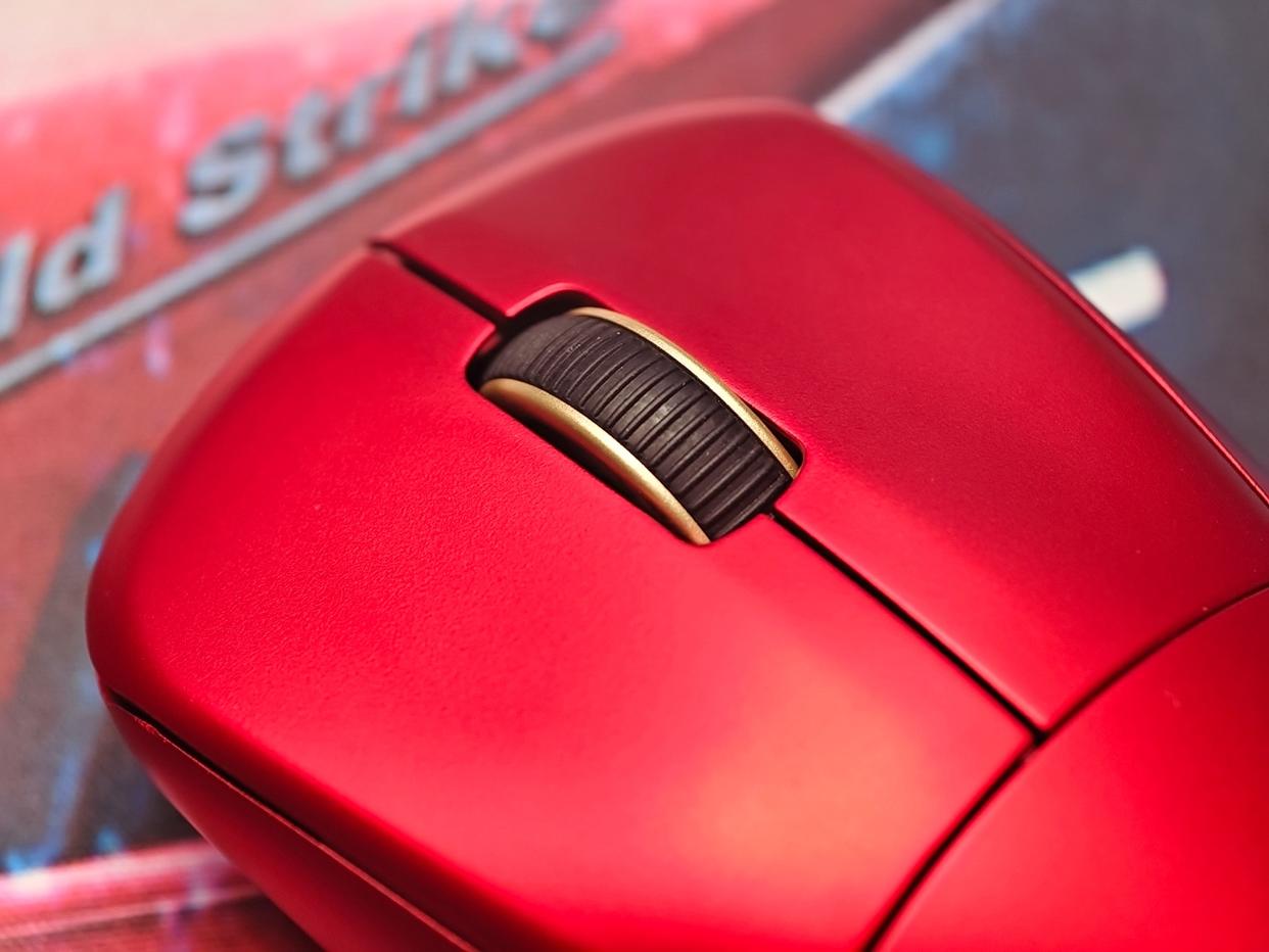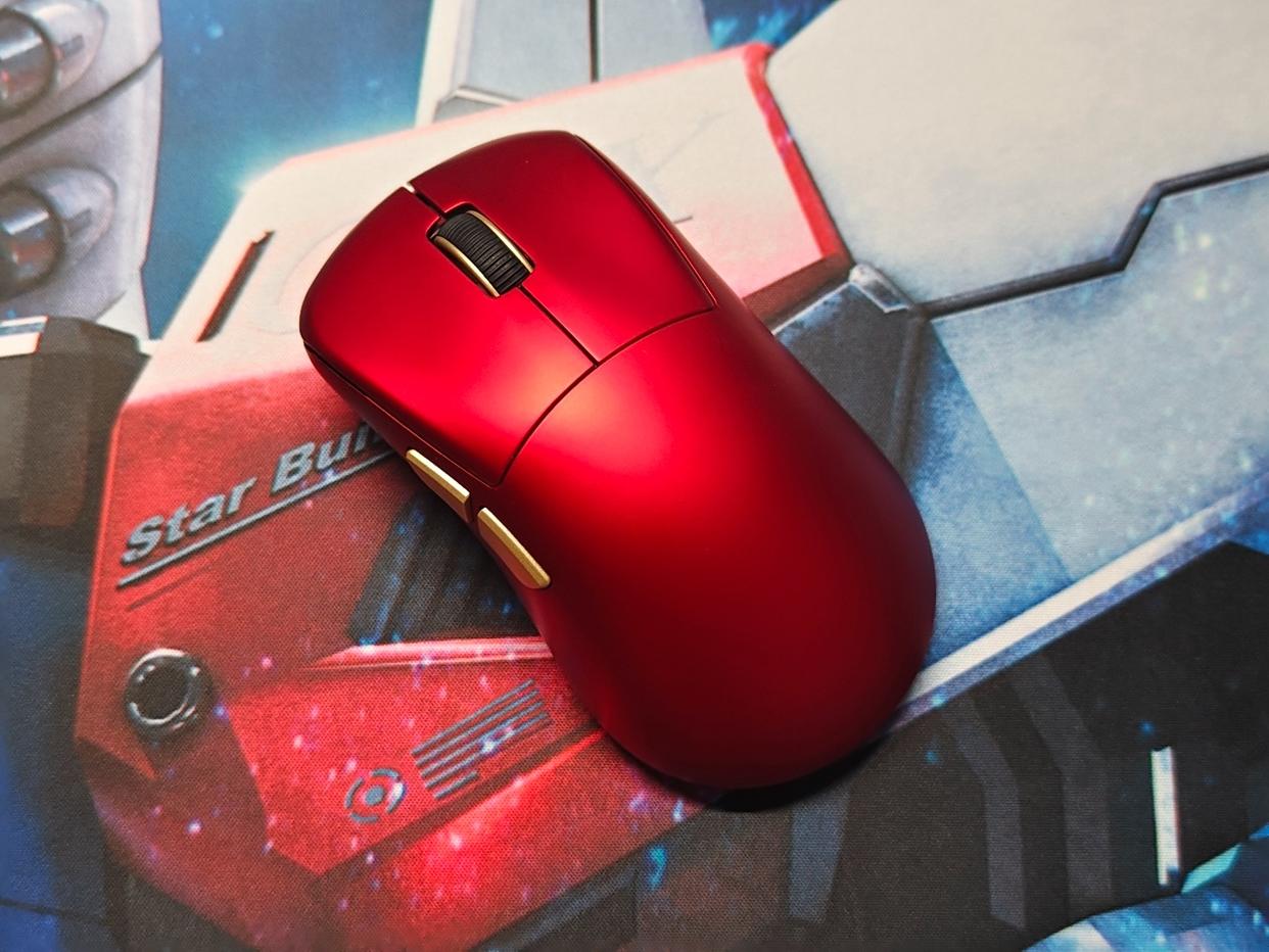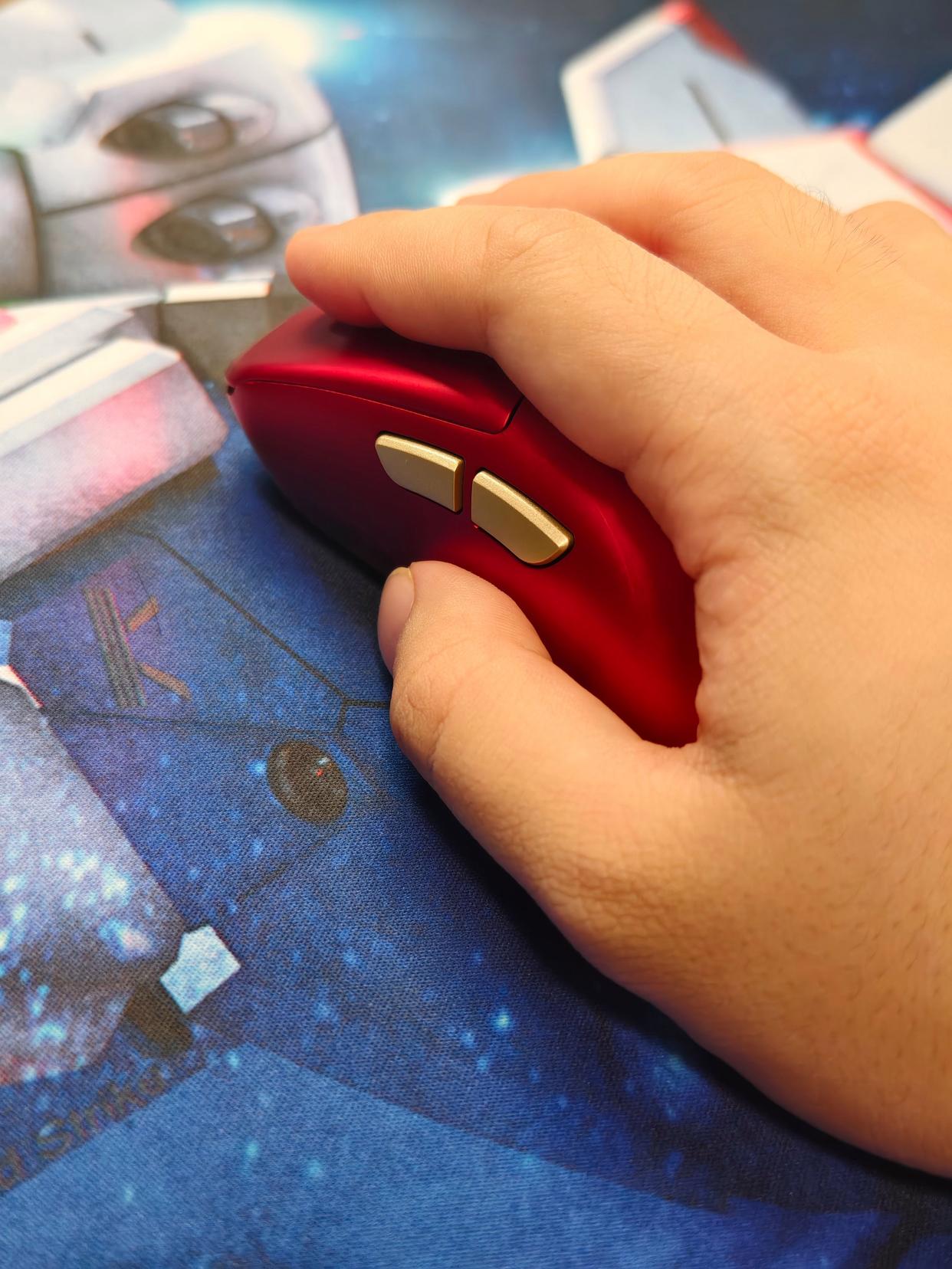 刚拿出鼠标,最先注意到的就是它的外观 —— 我入手的是红色款,红得很正,不艳俗也不暗沉,外壳表面的光泽感很细腻,尤其机身线条利落,加上红色外壳自带的亮眼质感,仔细看还有点钢铁侠战甲的那味道~