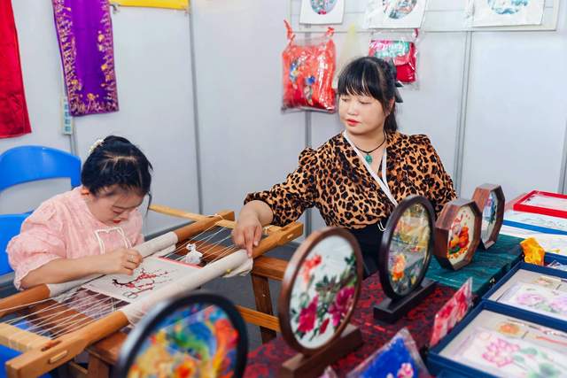 值得一提的是,由武汉市残联组织的“武汉首届特艺人才文创作品展”,9位残障艺术家借助车展的巨大流量来到现场,向武汉市民展示并售卖自己的艺术作品与文创产品。本次展览是武汉市残联首次在大型国际车展中设立残疾人艺术展区,集中展示了书画、汉绣、剪纸等多种形式的艺术作品。此次活动旨在拓宽残疾人艺术作品的传播与销售渠道,推动残疾人文化事业与产业融合,增强社会对残疾人艺术创作的关注与认可。