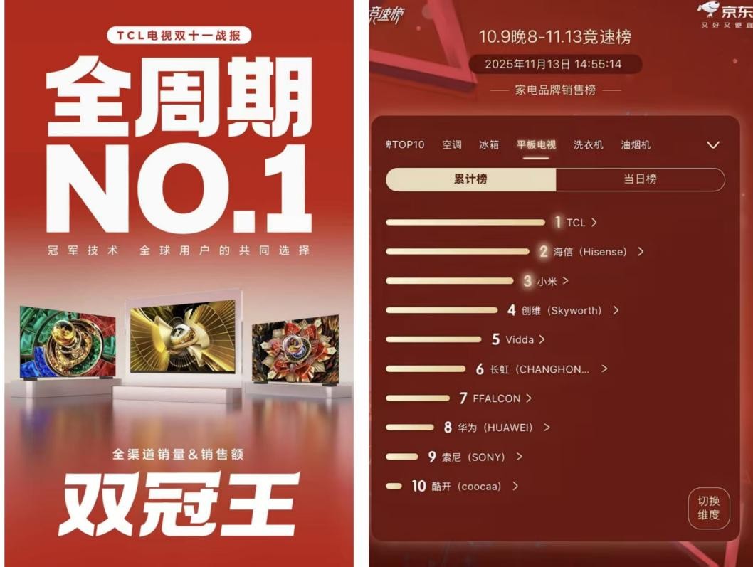 说那么多,你可能比较好奇,今年到底有什么爆品让TCL成了双十一全周期双冠王?
