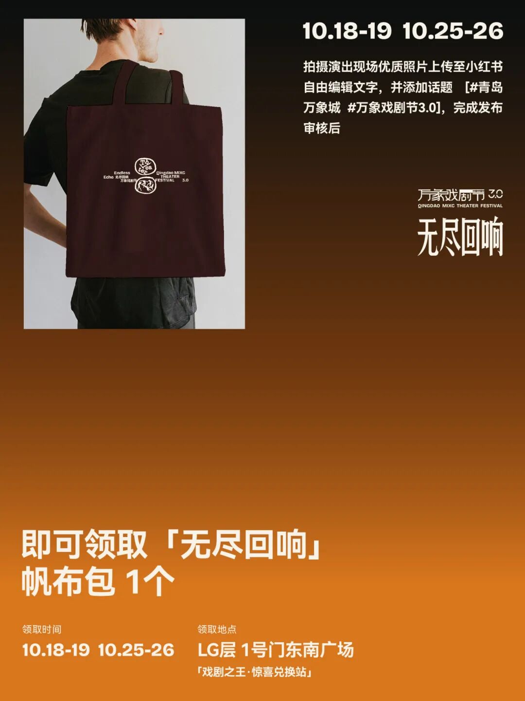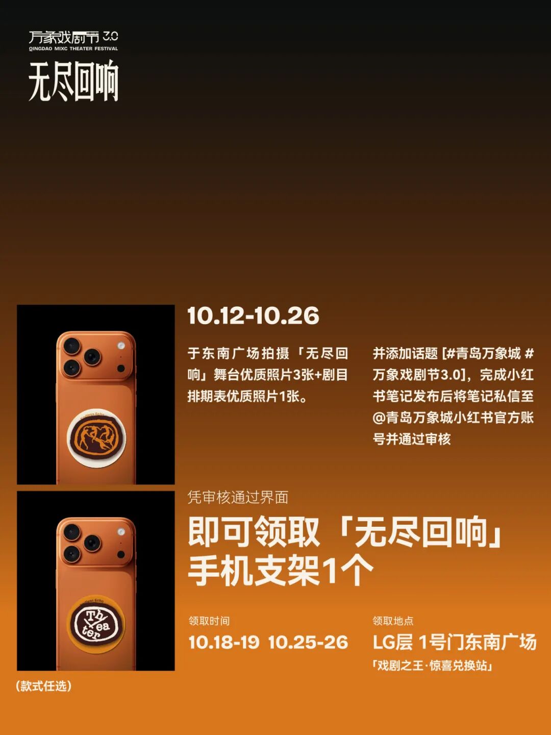 青岛万象城将于10.18-19、10.25-26举办【无尽回响-万象戏剧节3.0】。通过户外沉浸式舞台、特邀剧目展演、巡游表演等多元创新形式,打造城市级消费文化热点事件。