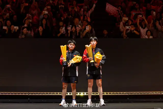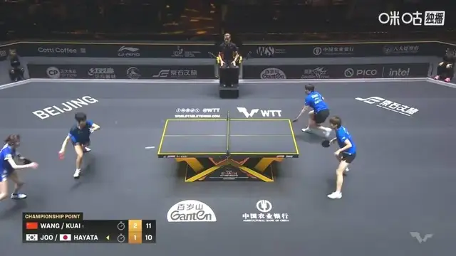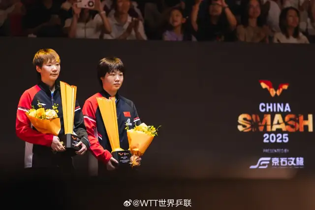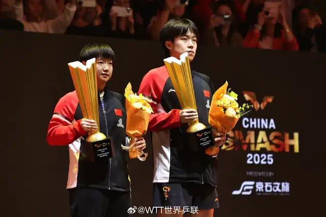 2025WTT中国大满贯女双决赛,王曼昱/蒯曼3-1战胜日韩组合早田希娜/朱芊曦,夺得女双冠军!四局比分:6-11、11-8、13-11、12-10。