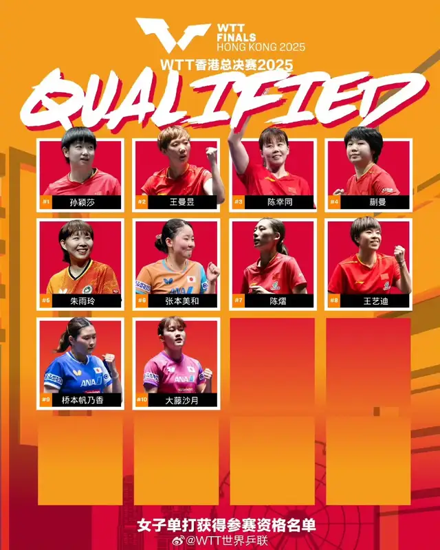 2025WTT香港总决赛,汇集中外顶尖选手: