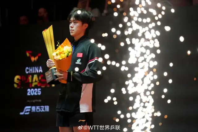 2025WTT中国大满贯男单决赛,王楚钦4-0战胜法国选手费利克斯-勒布伦,夺得男单冠军!四局比分:11-7、11-2、11-5、11-7。