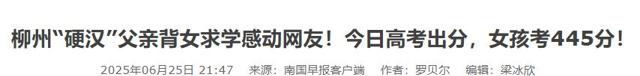 南国早报客户端(柳州“硬汉”父亲背女求学感动网友!今日高考出分,女孩考445分!2025.06.25)