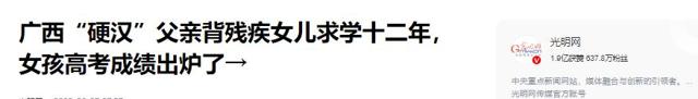 光明网(广西“硬汉”父亲背残疾女儿求学十二年,女孩高考成绩出炉了→2025.06.27)