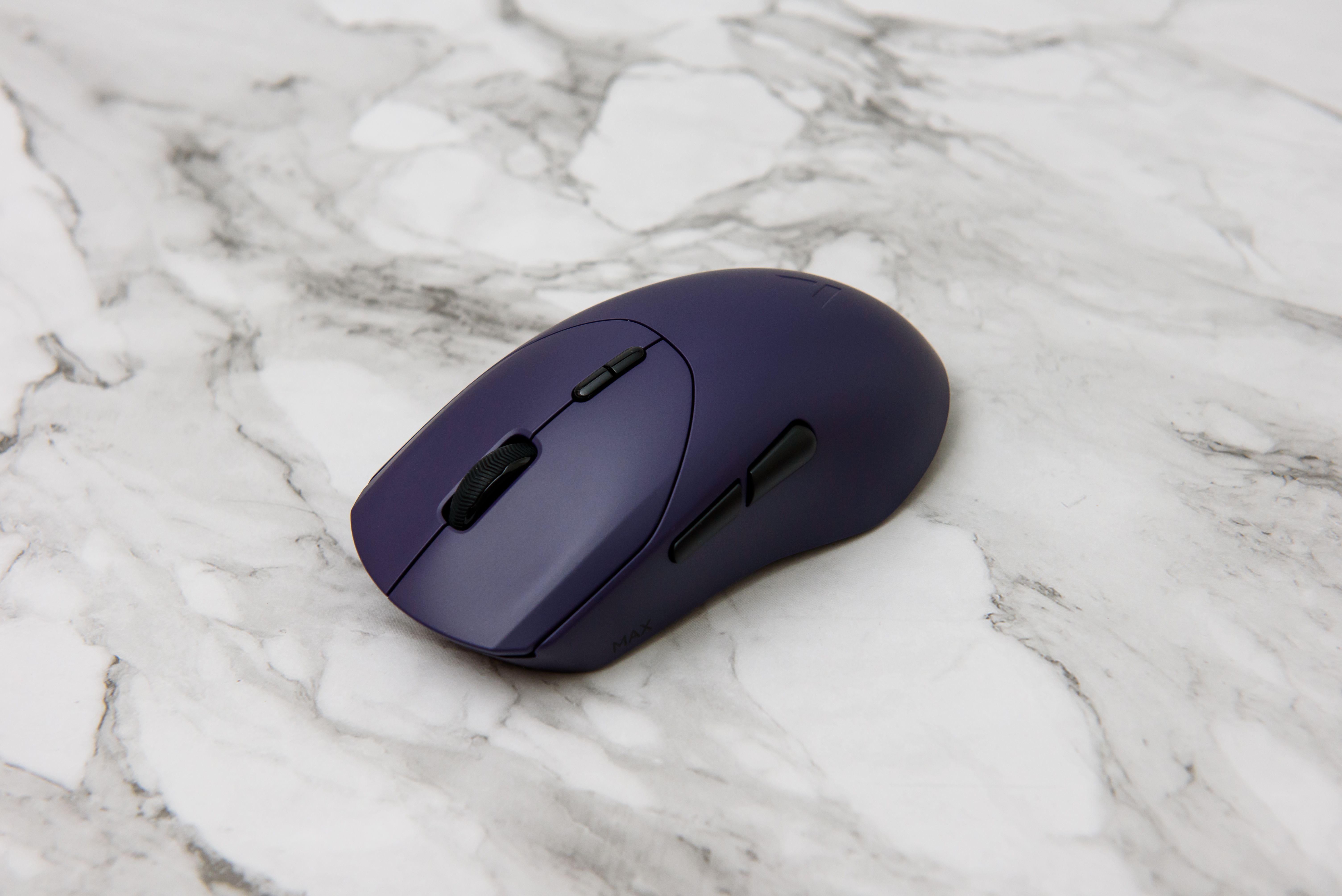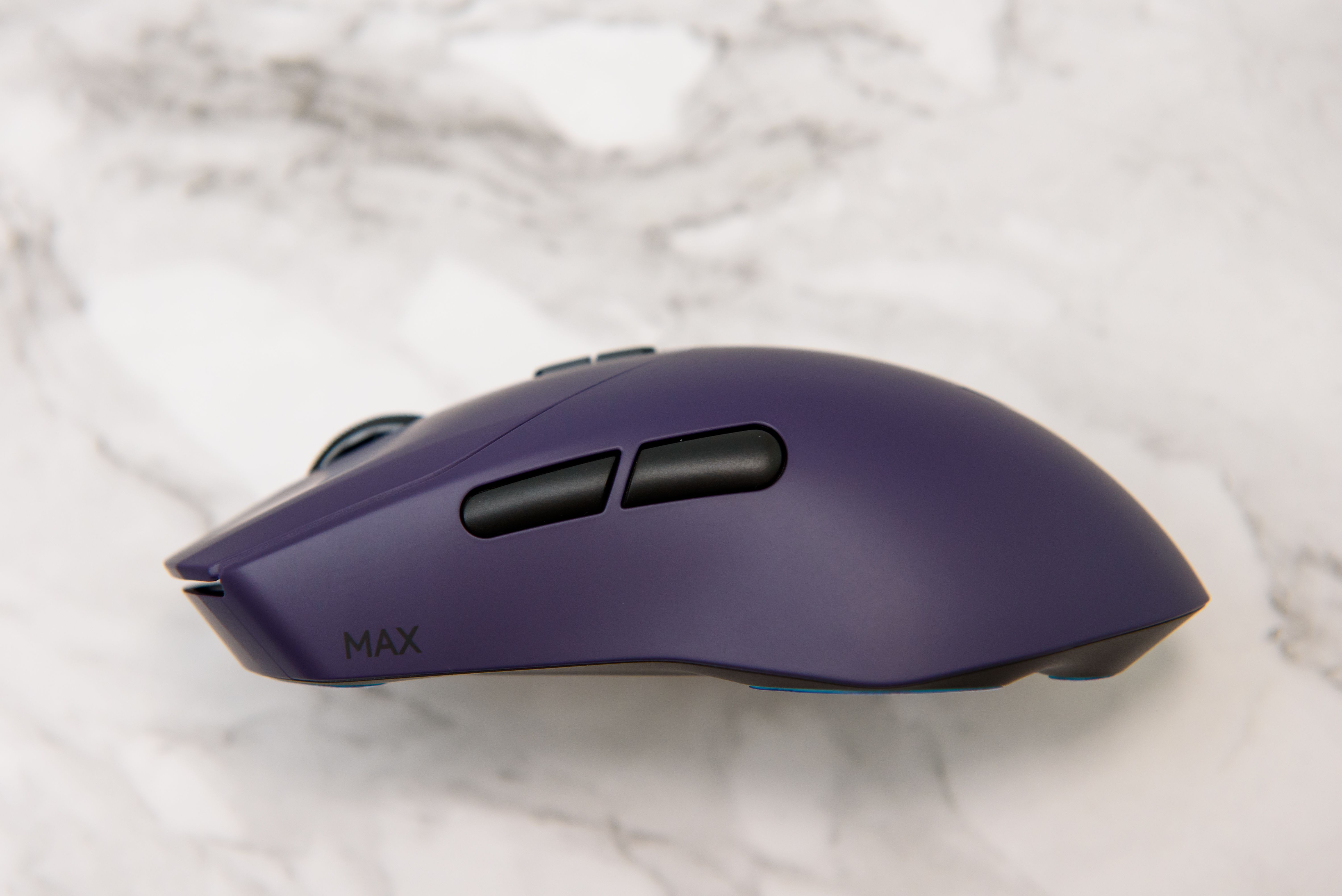 ▼鼠标左侧两颗侧键采用磨砂质感,造型流畅,鼠标在左下角印有MAX字样.