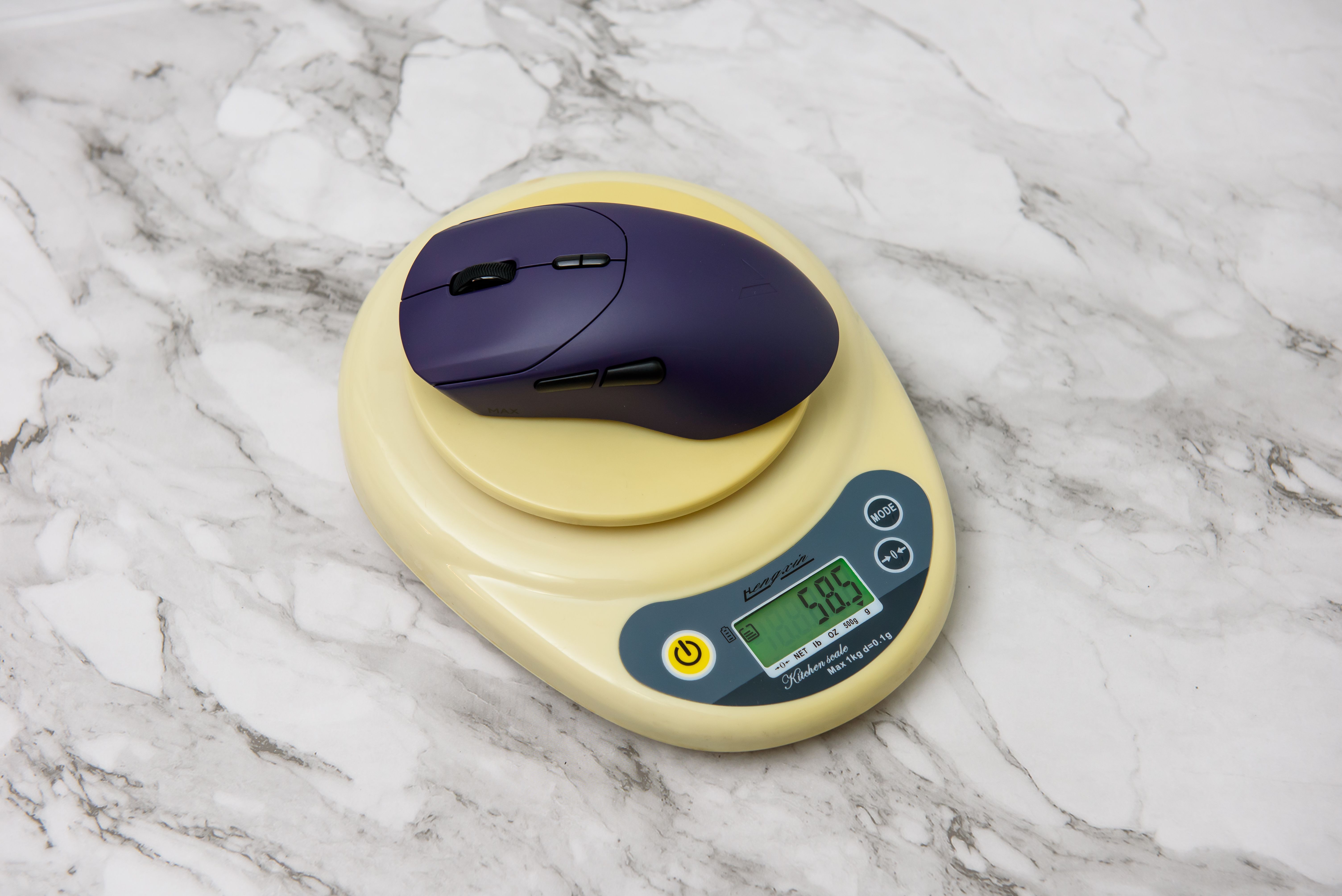 ▼由于内部结构的优化,鼠标实际称重58.5克, 雷柏将轻量化做到了极致