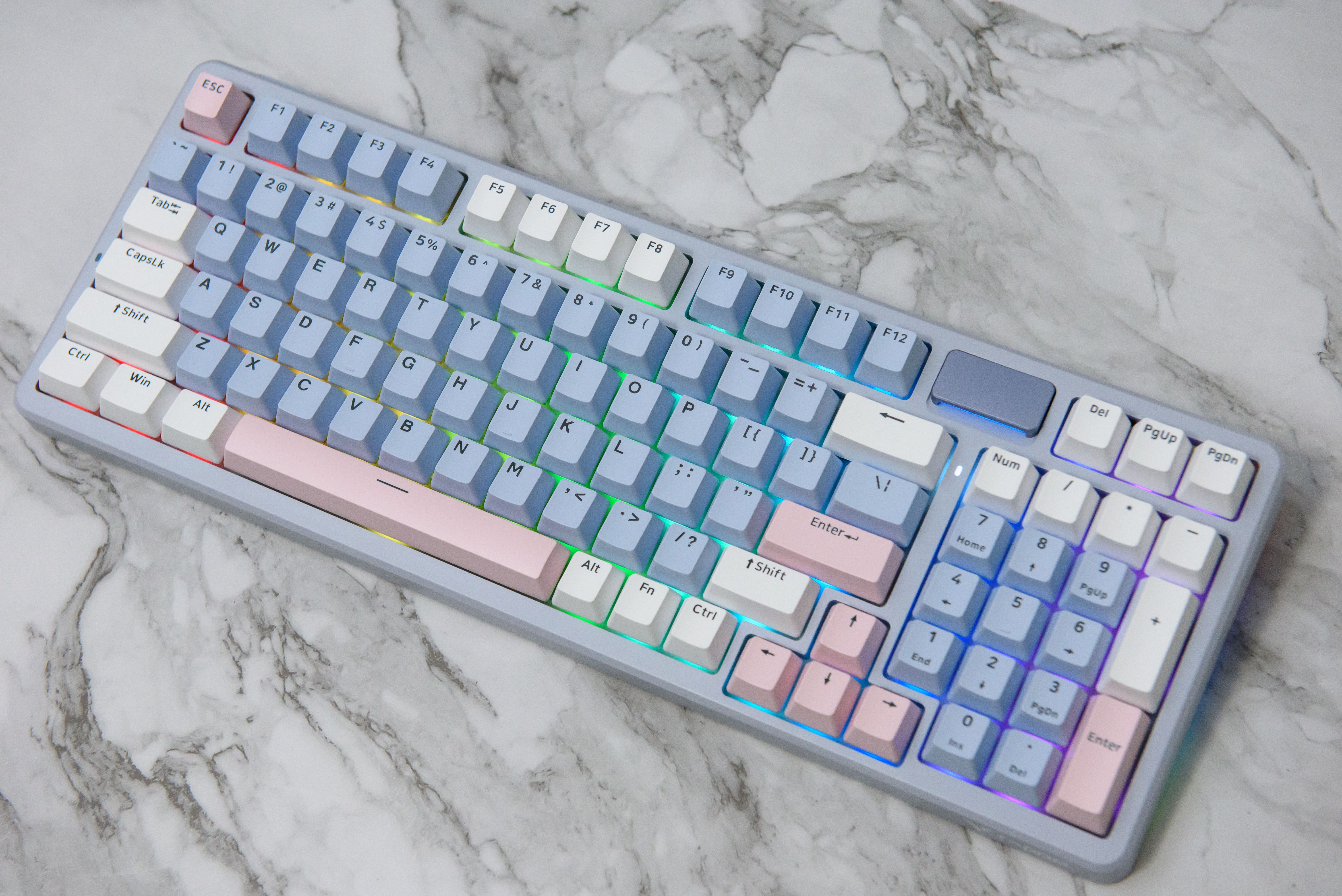 ▼雷柏V700DIY-98长续航版本保持了98配列方案,紧凑的布局为鼠标操作腾出更多的空间, 拥有初号骑士、莫奈仙踪、幻影机甲三种配色。