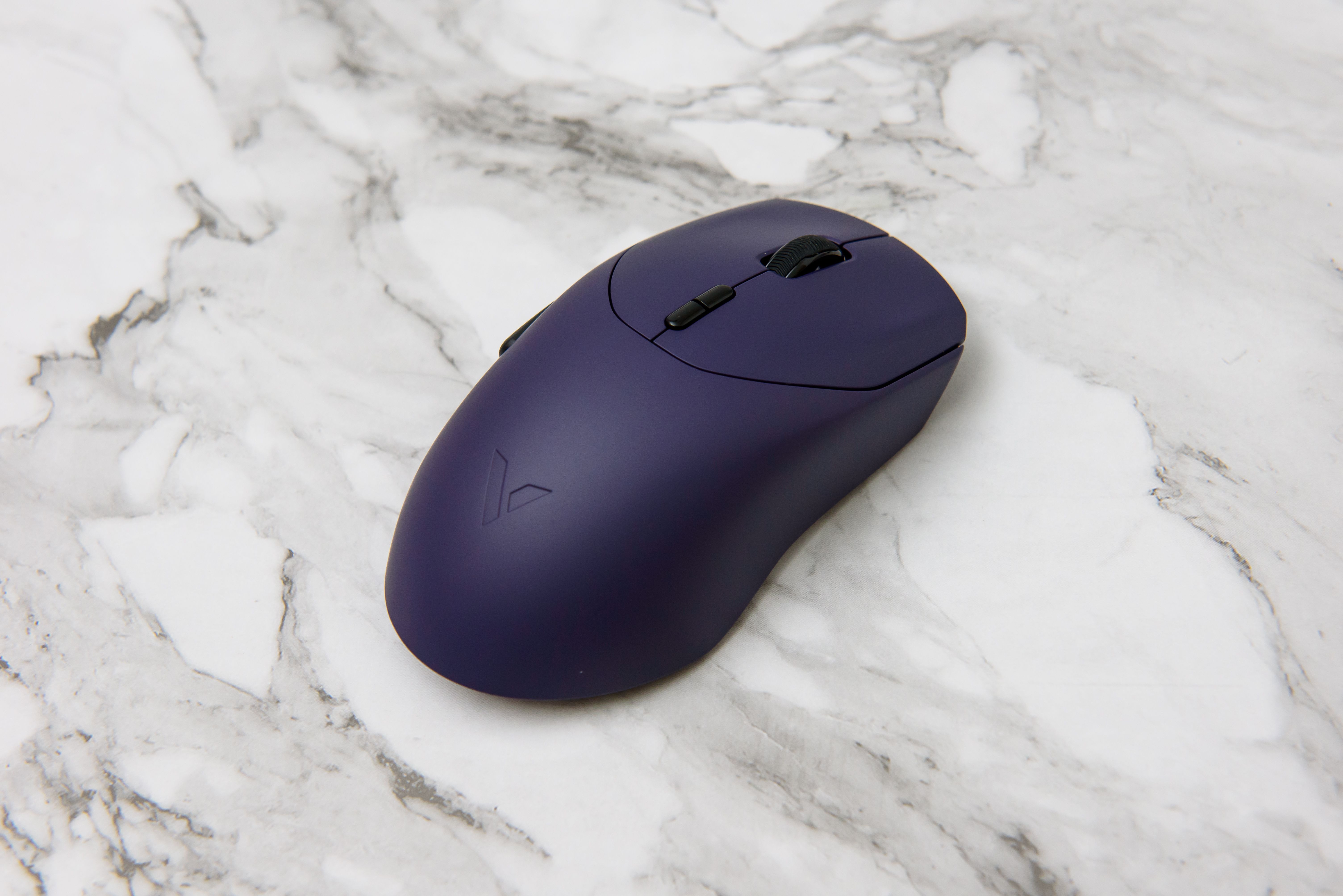▼VT9 MAX整体尺寸为125×65×39mm, 鼠标比老版本更加修身,属于适合中大手玩家抓握使用的鼠标, 鼠标侧腰内凹可以让手指进行更精准的操控,通过三角区发力点对鼠标的掌控力更强