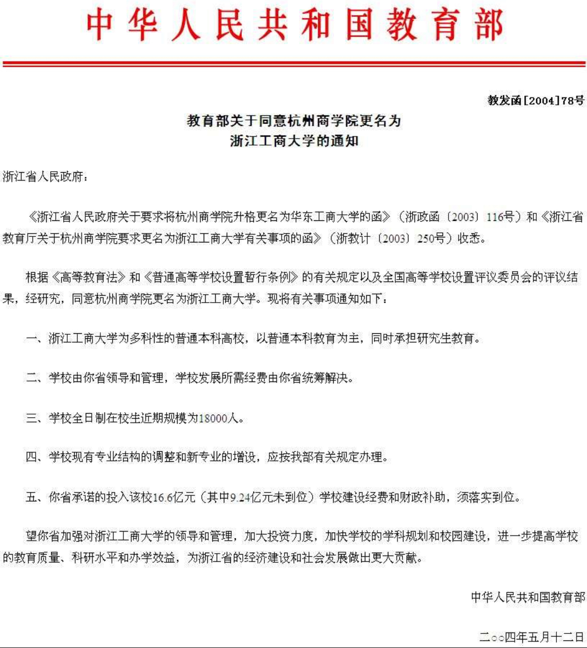 但是很遗憾,学校最终没能拿下,教育部批准给它的校名是浙江工商大学。