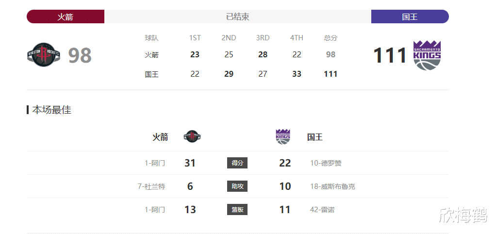 西部第14掀翻第7!国王111-98吊打火箭阿门空砍31+13+6独木难支