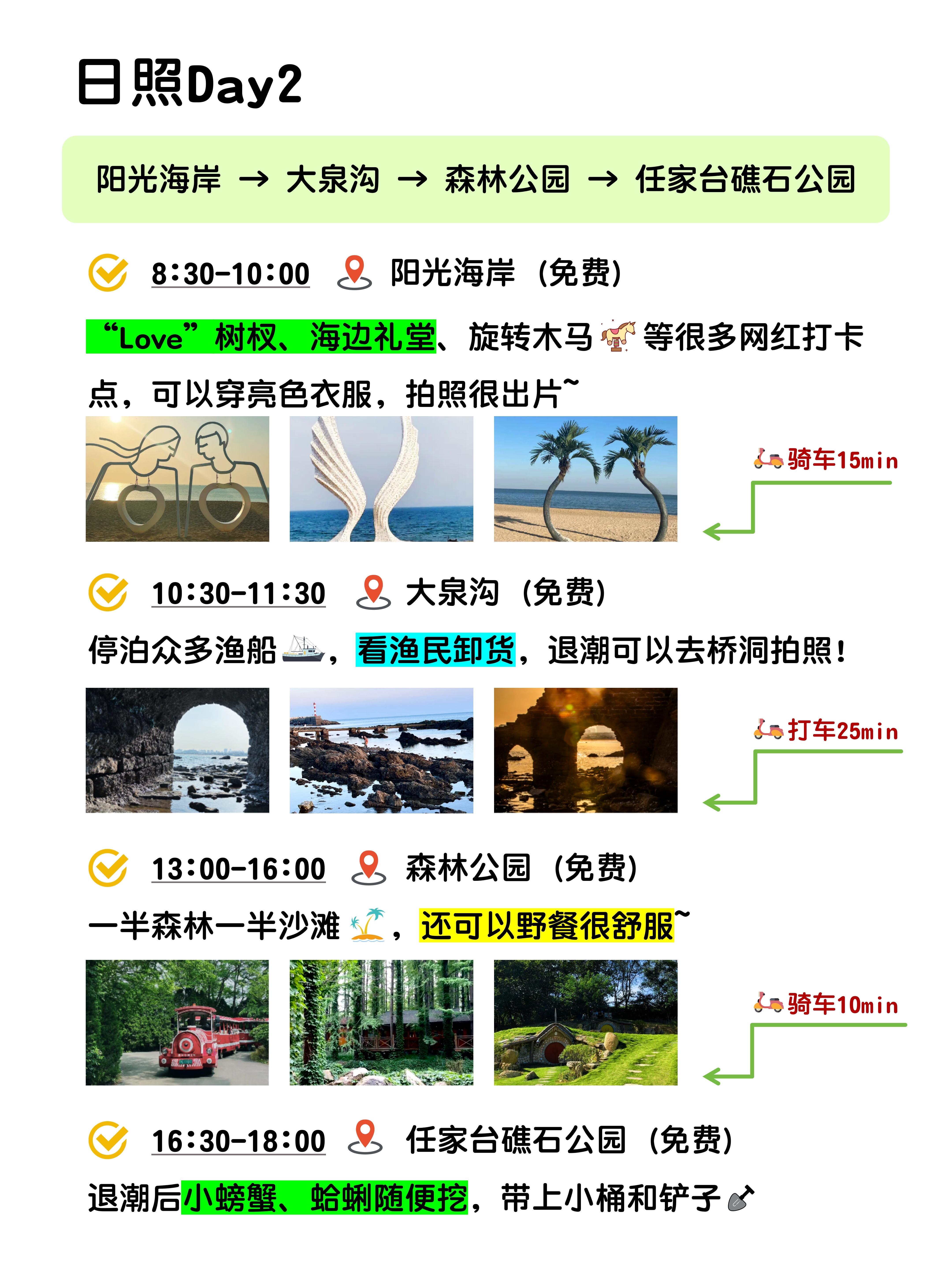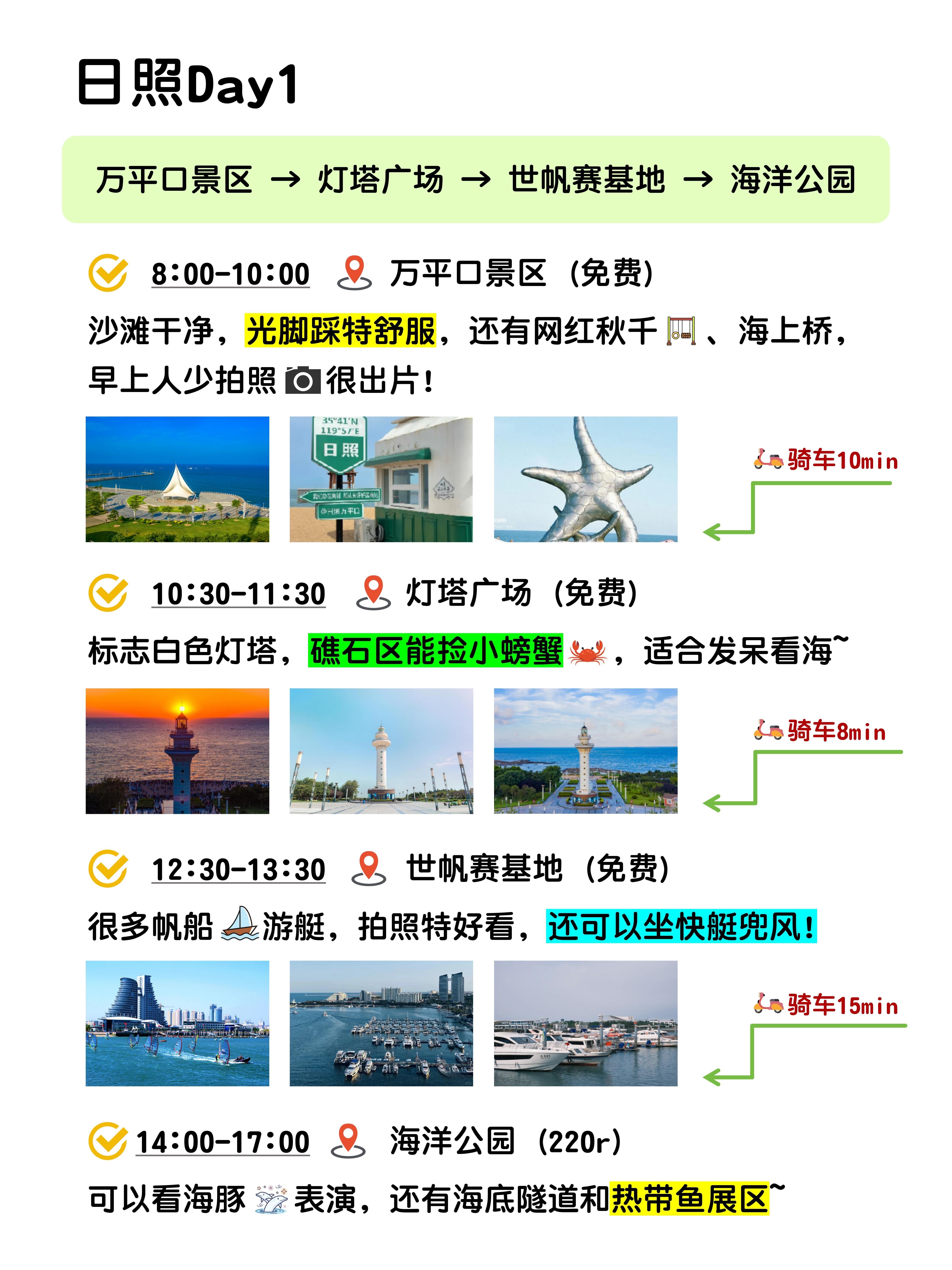 🌈Day1 万平口景区 → 灯塔广场 → 世帆赛基地 → 海洋公园🌈Day2 阳光海岸 → 大泉沟 → 森林公园 → 任家台礁石公园